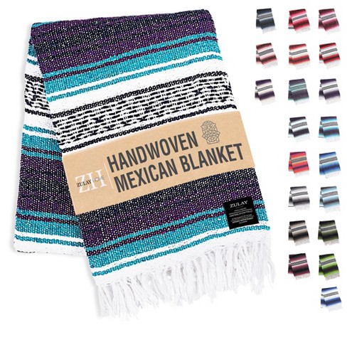 Zulay Home Hand Woven Mexican Blankets 71 X 47 Artisanal Boho Falsa Blanket For Yoga Outdoor Car Beach Picnic Camping Purple Tulum Target